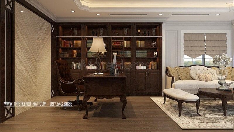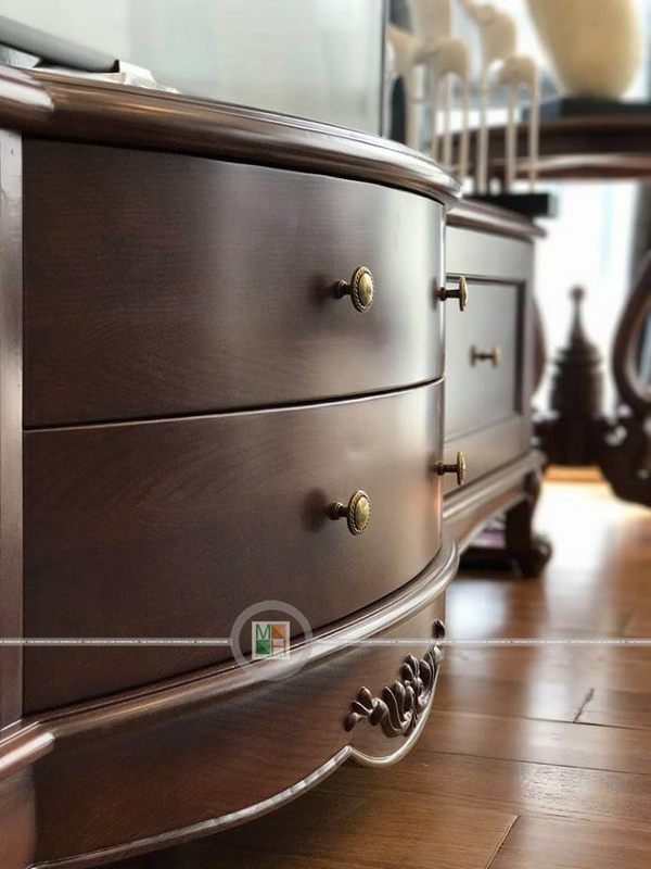 Ecopark đã hoàn thành với một mẫu kệ tivi gỗ óc chó tân cổ điển sang trọng. Mẫu kệ tivi gỗ óc chó tân cổ điển đã được thêm vào công trình nội thất biệt thự đẹp tại Hưng Yên Ecopark, tạo nên một không gian sang trọng cho phòng khách.