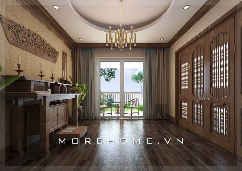 Khi nhìn thấy vẻ đẹp của mẫu thiết kế nội thất phòng thờ biệt thự đẹp sử dụng nội thất gỗ tự nhiên cao cấp: cánh cửa, bàn thờ, người ta không thể không bị choáng váng bởi những điều đó đã tạo nên một không gian thờ cúng sang trọng đầy đẳng cấp.